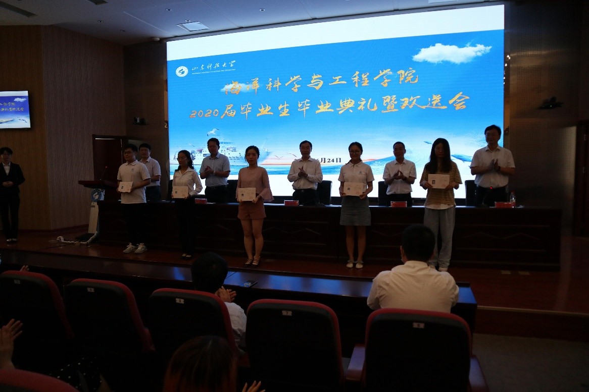 典礼上,学院朱建国书记、周兴华院长向毕业生赠送有海洋特色的纪念品——海院文创包,以“物”寄相思、以“包”承嘱托,表达了学院对2020届毕业生满载而归的殷切期望和祝福。大会还向获得2020届省级优秀毕业生、校级优秀毕业生同学颁发了荣誉证书。