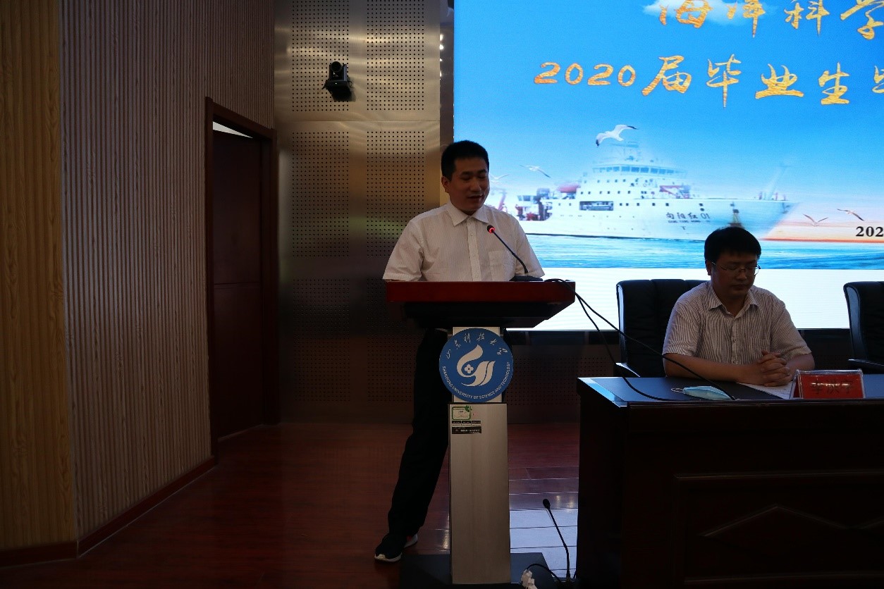 典礼上,副院长李洪宇宣读了2020届全体毕业生名单并代表学院全体师生向毕业生表达祝贺。随后,毕业生代表谭琪同学代表2020届全体毕业生发言,她以感恩四年时光、感恩母校及老师、致敬未来为题深切表达了对母校领导、老师们由衷的感谢,以及对未来的憧憬,希望未来的大家,能在自己热爱的领域有所突破、有所进步,为母校争光,语言之真挚感人肺腑,学生跟老师眼中都闪烁泪光。接下来,在校生代表祝振远同学发言,字里行间充满了对学校、学院教育培养的感谢,以及对毕业生学长学姐由衷的祝福。教师代表船舶工程系教师袁一博老师代表全体教师发言,对同学们圆满结束在大学的求学生涯,即将告别母校,开启人生新的征程致以最热烈的祝贺,并对毕业生提出了三点希望:“秉持恒定之心守目标、秉持克己之心守底线、秉持敬畏之心续求索”。