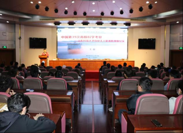 报告会上,王磊老师详细介绍了自己前往南极科考的经历,他跟随南极科考队,圆满完成了预定的科研任务,图文并茂的展示了第39次南极科考情况,报告内容干货满满,引起在座师生的热烈共鸣。王磊老师通过展示科考过程中的一些照片,详细讲解每张照片背后的故事和蕴含的科考精神,同学们听得津津有味,赞叹不绝。