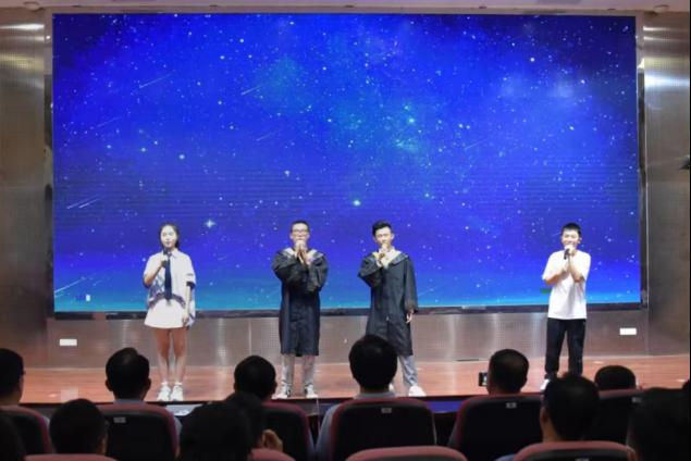 典礼上播放了毕业视频,师生一同回忆了毕业生在校四年的青春岁月,毕业代表带来歌曲《仰望星空》、毕业生党员带来朗诵《送别》,毕业生通过精彩的节目表达了对母校的留恋之情,为老师们送上了花束表达对他们辛苦付出的感谢,最后所有老师一同上台,欢送毕业生。(通讯员:李佳宜 摄影:吕佳悦)