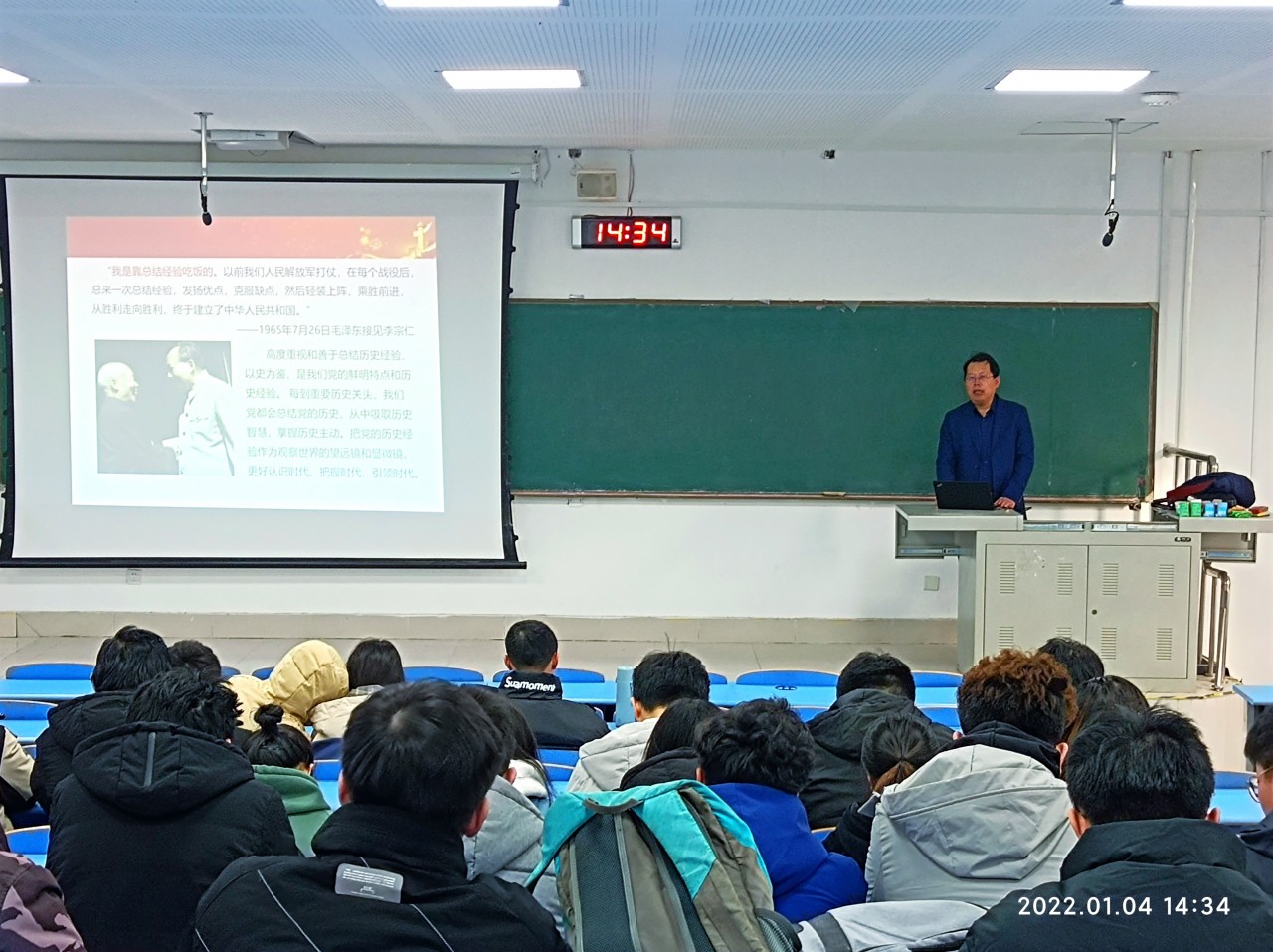 1月4日,77779193永利集团执行院长杜立彬在J7教学楼203室面向学院学生党员及全体毕业生宣讲党的十九届六中全会精神。