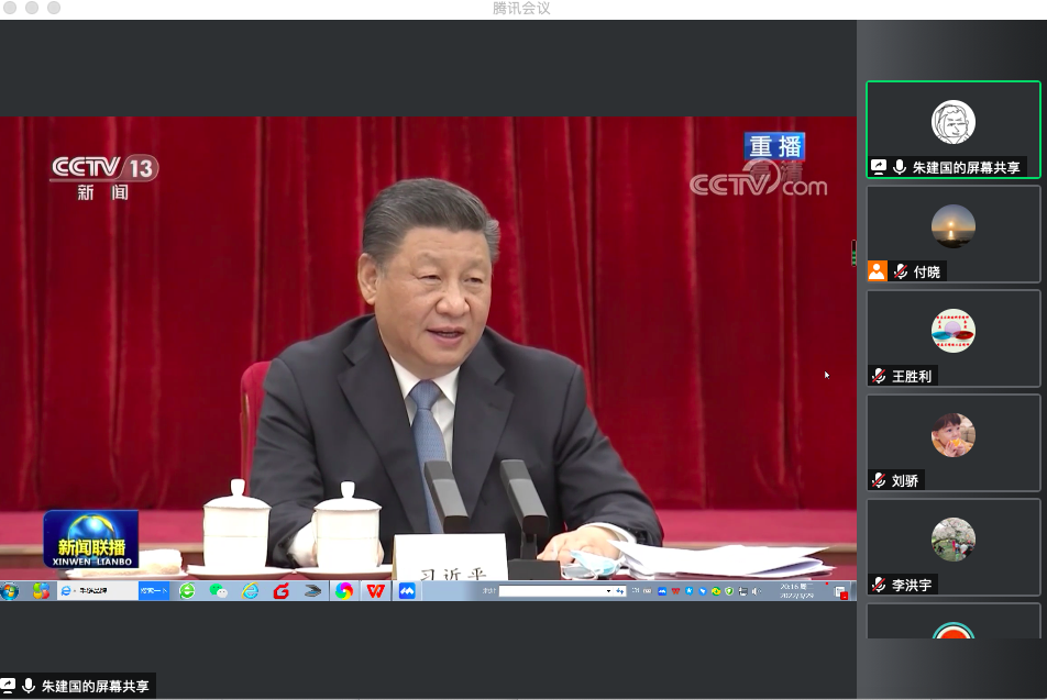 中心组成员深入学习了习近平总书记在主持召开中共中央政治局常务委员会、中共中央政治局第三十七次集体学习、中央人大工作会议、参加内蒙古代表团审议和中央政协工作会议暨庆祝中国人民政治协商会议成立70周年大会上的重要讲话精神,解读了《关于推动党史学习教育常态化长效化的意见》文件精神,集中观看了习近平总书记在看望参加全国政协十三届五次会议的农业界社会福利和社会保障界委员时的重要讲话视频。